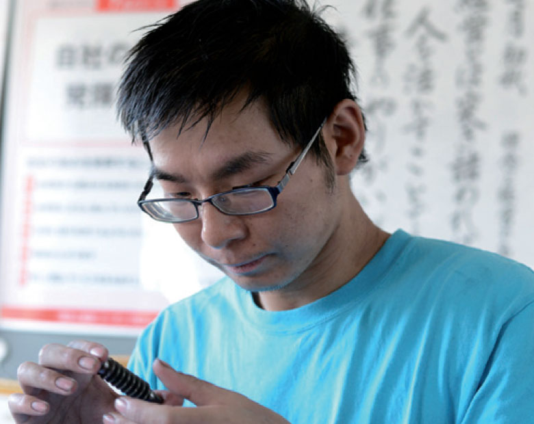 「君に向いている」と学校のキャリアセンターに勧められ入社しました。何もないところから、細かな調整でネジができていく過程は楽しいです。今はまだ専務や工場長に助けられながら仕事をしていますが、図面を見ながら数値を入れる設定を早く覚えたいし、みんなのレベルにはやく追いつきたいです。現在は、CSR管理にて金型の管理や段取り者の育成に向けて自分自身も多品種少量への対応できるように、日々腕を磨いております。やることがたくさんあるので日々コツコツと積み上げていきたいと思います。